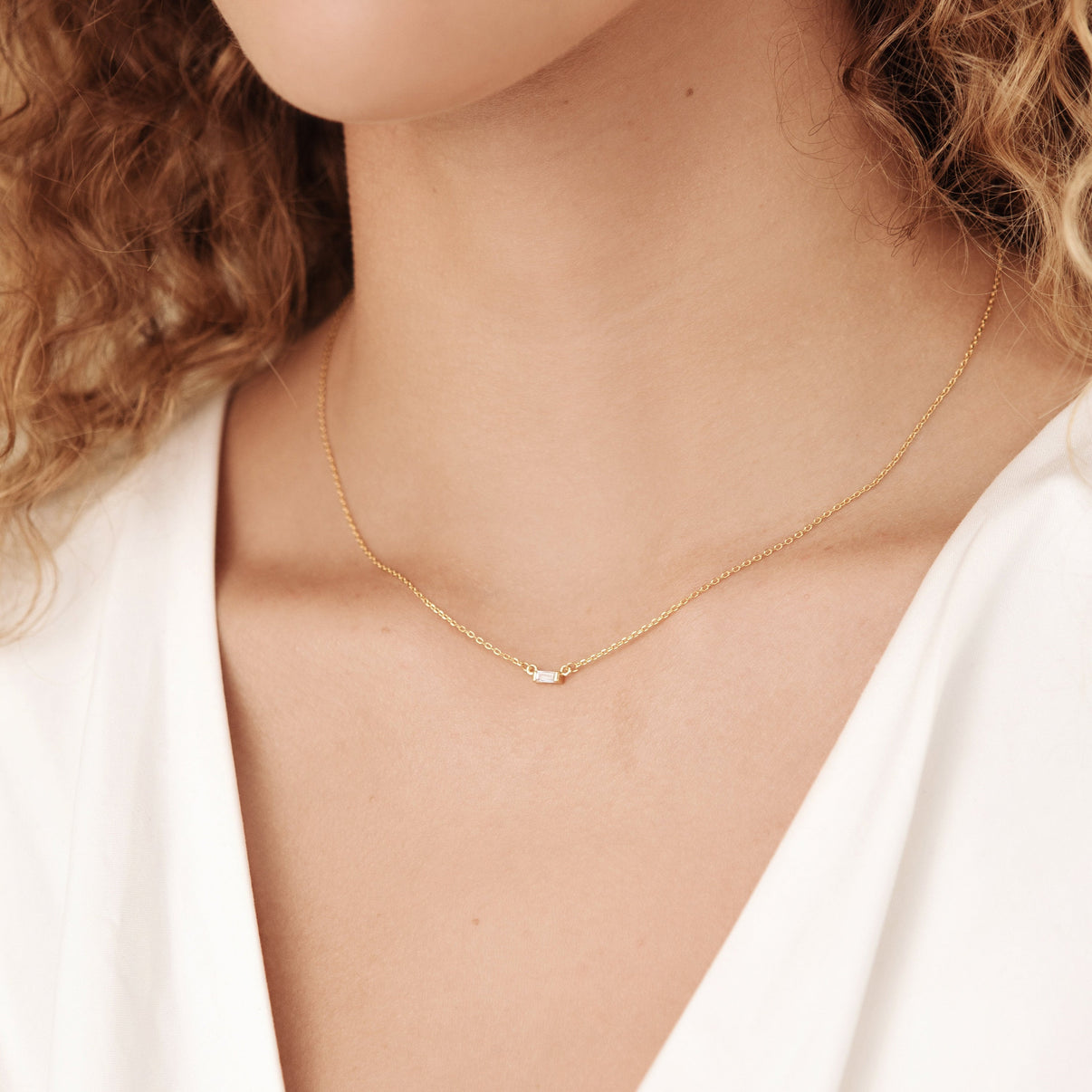 For an eye-catching, yet minimal necklace that elegantly highlights your neck/décolletage, look no further than the Emery Baguette Necklace. Perfect for a special holiday gift, this necklace adds a touch of refined glamour to your look.