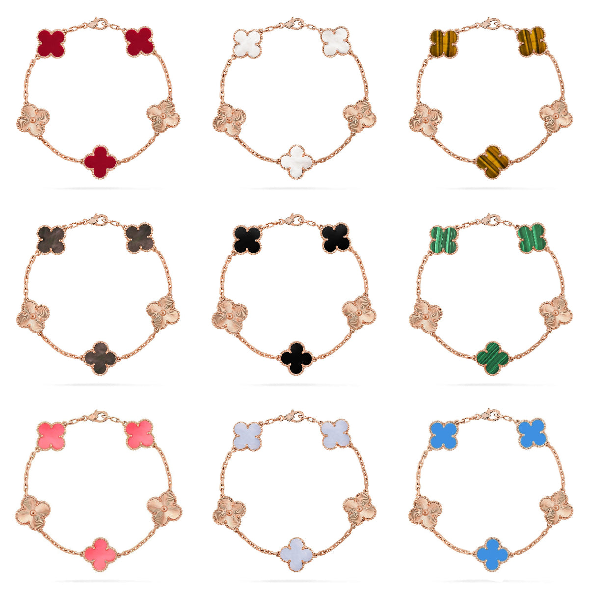 [Luna Brilliance]THICK GOLD-PLATED CUSTOM SIZE EDITION CLOVER LASER ROSE GOLD BRACELET COLLECTION,5 MOTIFS
