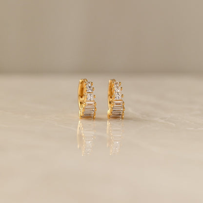 Bring back art deco and vintage style with these Art Deco Huggies. The dainty yet noticeable huggie hoops are easy to wear with anything in your closet to give that old Hollywood essence you__e been craving.