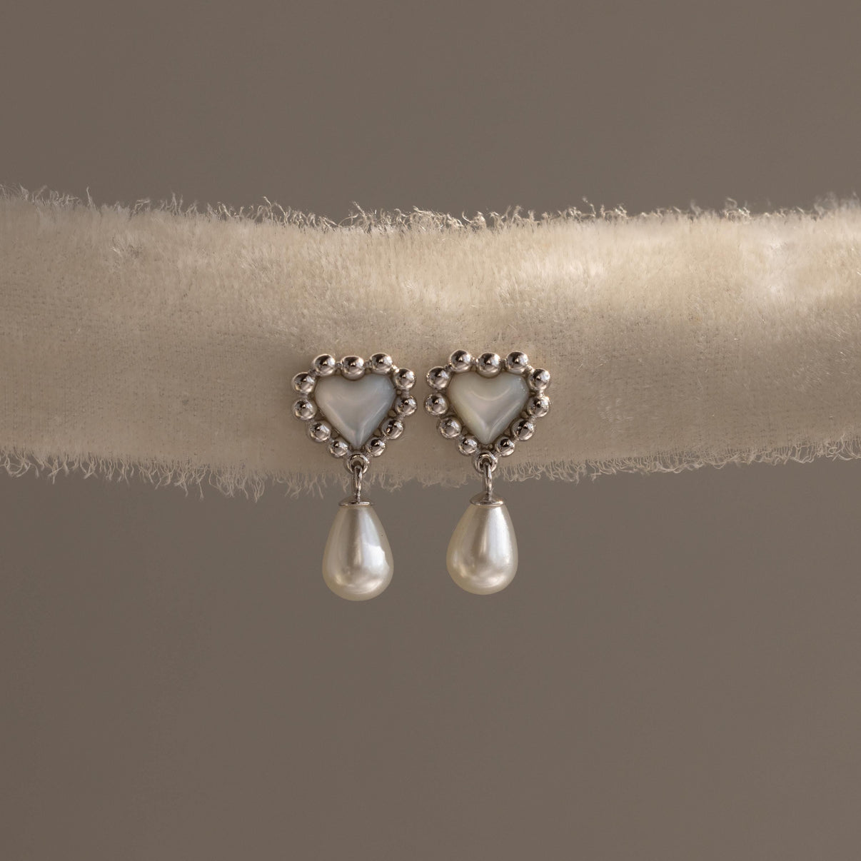 A romantic blend of elegance and charm, our Pearl Heart Beaded Drop Studs feature a mother of pearl heart framed with polished beaded detailing and finished with a soft teardrop shaped pearl. Delicate yet eye catching, they__e perfect for special moments or adding vintage flair to your everyday look. A lovely gift for vintage lovers, bridesmaids, or yourself _
