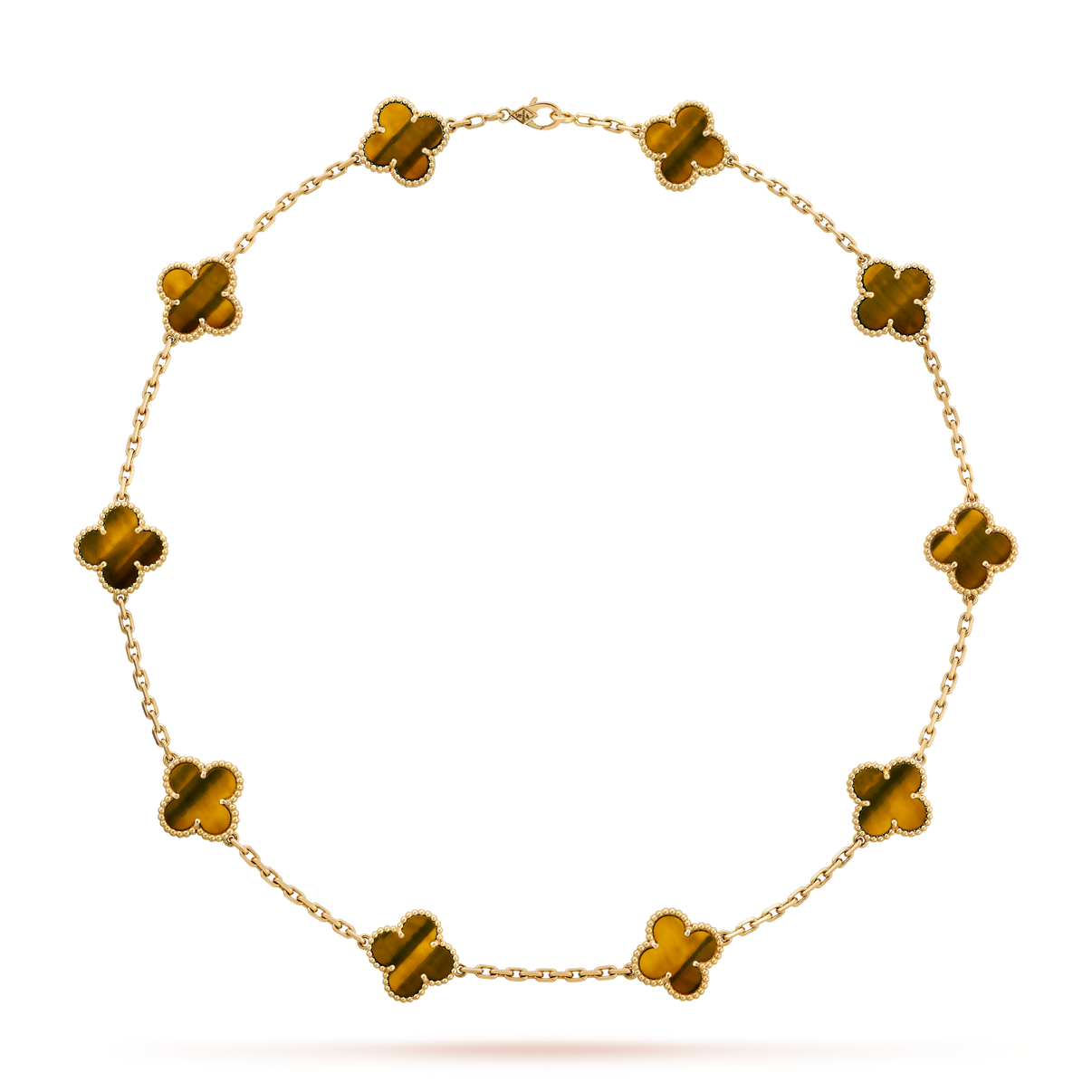 [Luna Brilliance]CLOVER 10 MOTIFS TIGER EYE NECKLACE