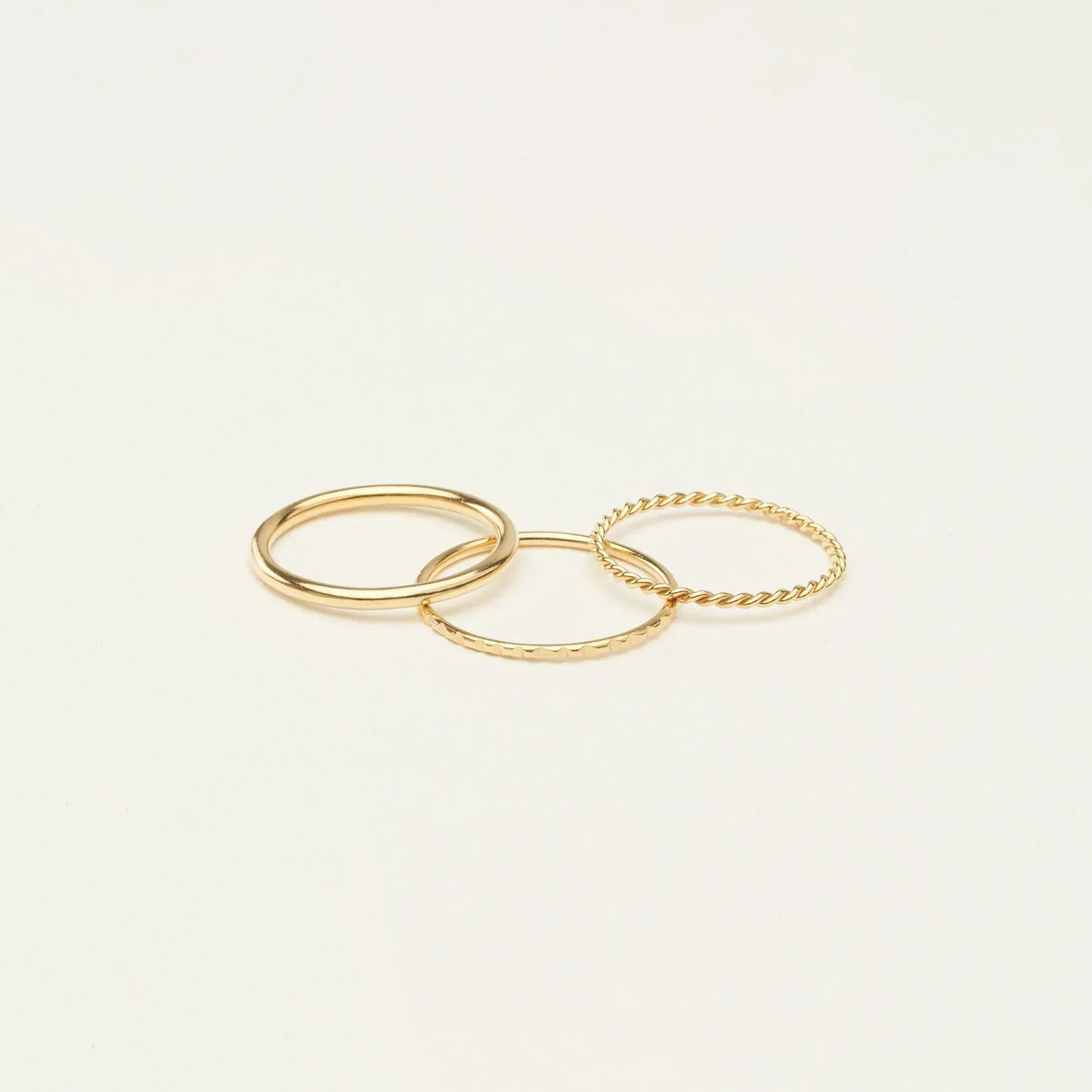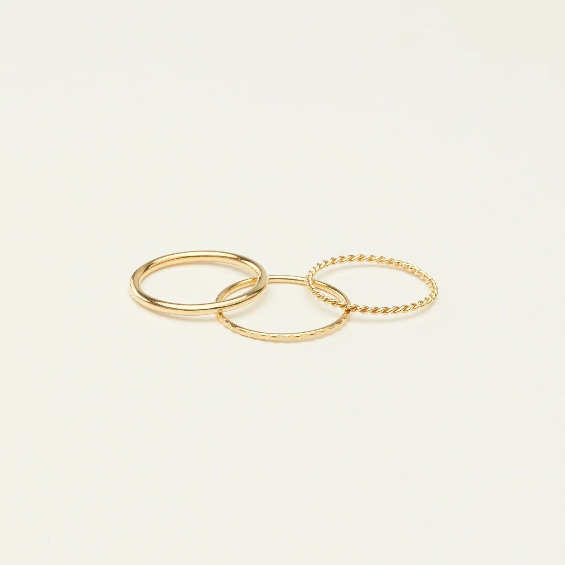 Make this holiday season shine with our Thin Stacking Rings Set__ trio of petite and chic bands that perfectly complement each other. Featuring varying textures, these polished and stylish rings add subtle layers of elegance to your fingers. Perfect for creating a stunning ring stack on their own or pairing with other favorites, it__ a thoughtful Christmas gift for jewelry lovers.